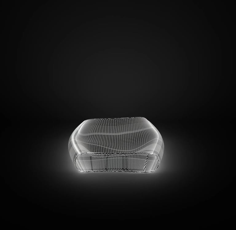 The shape was inspired by pure geometry. Clean curves, minimal surfaces, a timeless silhouette.
